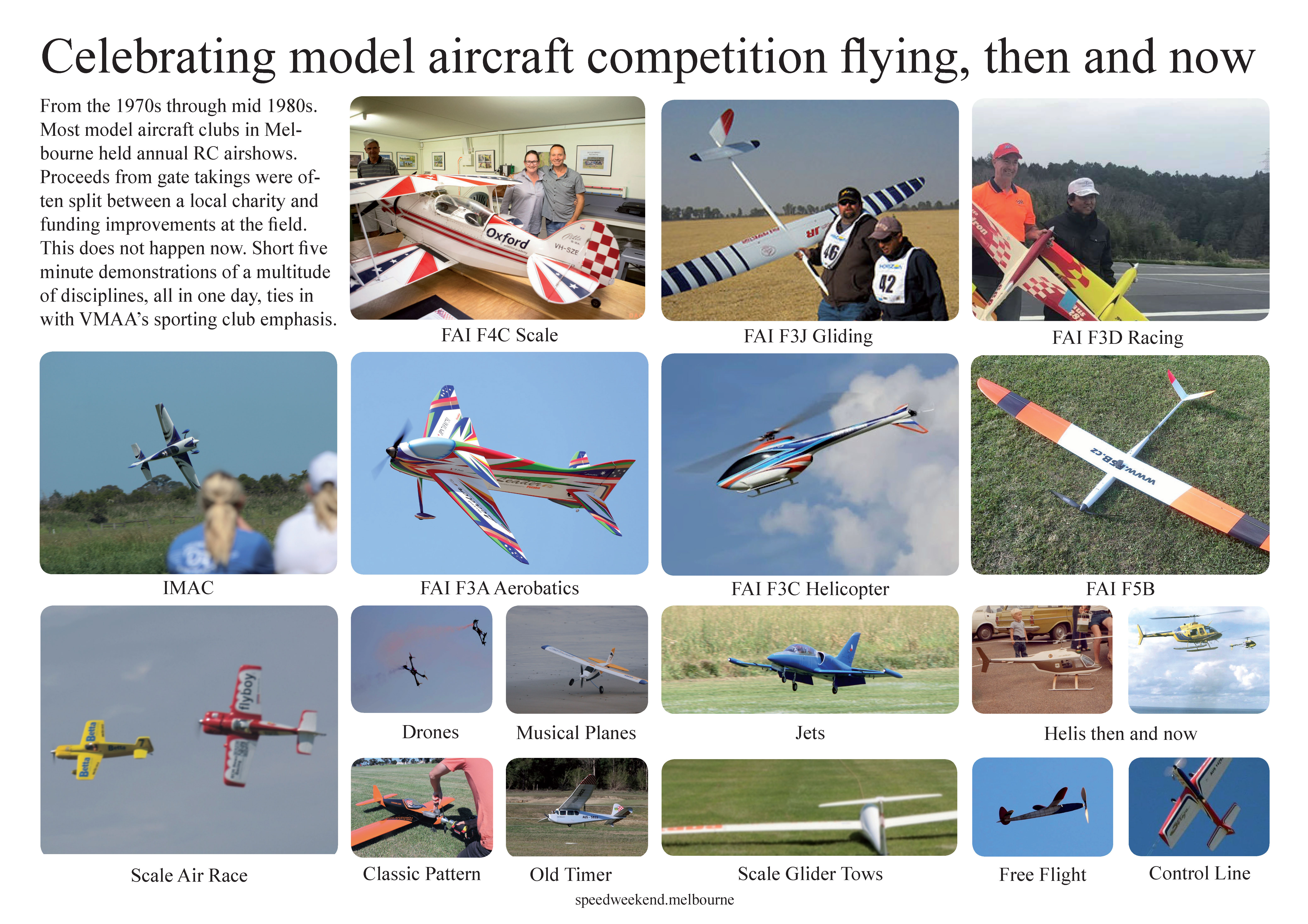 FAI Competition Flight Demonstrations - F3A Aerobatics, F4C Scale, F3D Racing, F5B and F5J Gliding, F3C Helicopter - Air Races - Civilian, Jets, Glider Tow, Old Timer, Classic Pattern